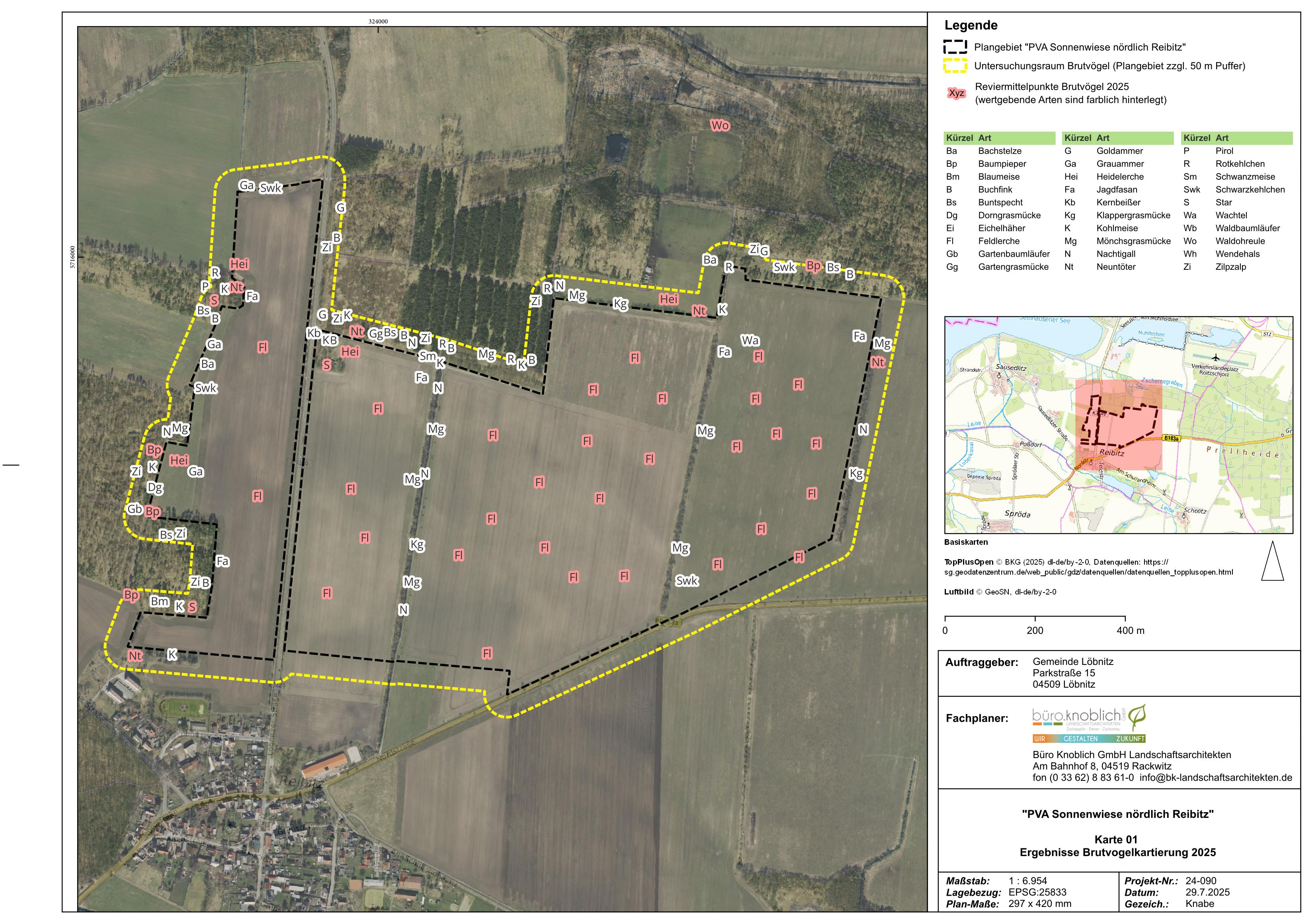 Entwurf des Bebauungsplans „PVA Sonnenwiese nördlich Reibitz“ der Gemeinde Löbnitz